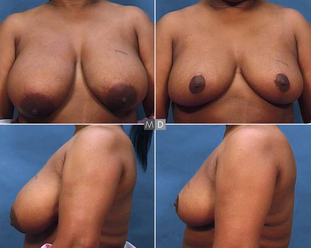 Similar to a breast lift in terms of the incision placement and lifting the nipple areolar complex back to a higher position on the chest wall, in breast reduction surgery, Dr. Deuber will also remove excess glandular tissue. This volume or weight is what pulls on the the skin envelope of the breast causing it to sag or droop. With breast reduction surgery, Dr. Deuber creates a smaller, more lifted and more youthful looking breast that is in proportion to the rest of your body. At its core, this is the goal with any breast surgery — to return your body contour to a state of harmony.