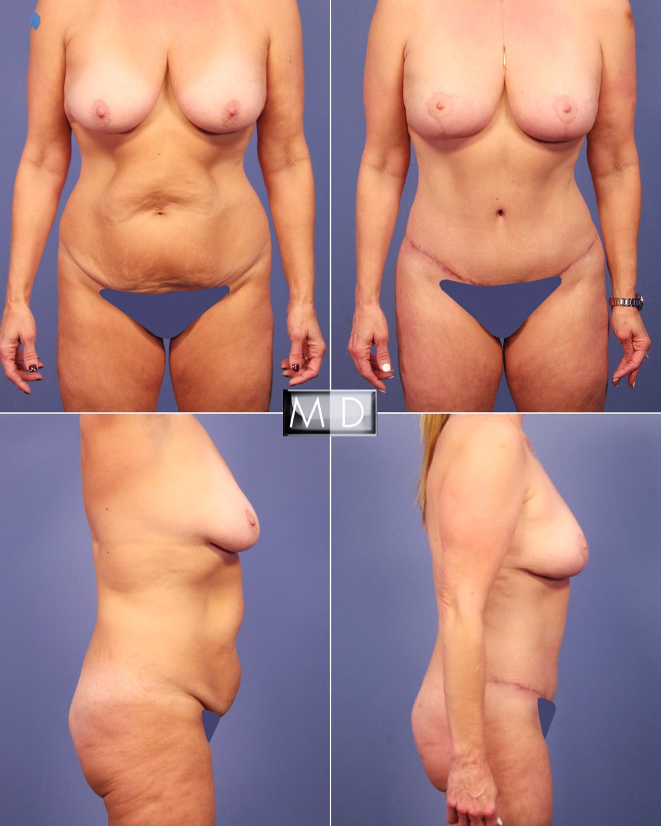 The abdomen is one of the biggest problem areas on the body. Lifetime events such as pregnancy, age, hormone fluctuations and weight gain/loss can all stretch the skin, tissues and muscles past their ability to “bounce back”. An abdominoplasty or tummy tuck is a surgical procedure that creates a firm, taut, and more youthful looking abdomen. For many women who’ve had children or patients who’ve lost a massive amount of weight, it is the only way to remove the excess skin that is resistant to diet and exercise, and restore balance to your abdominal contour.